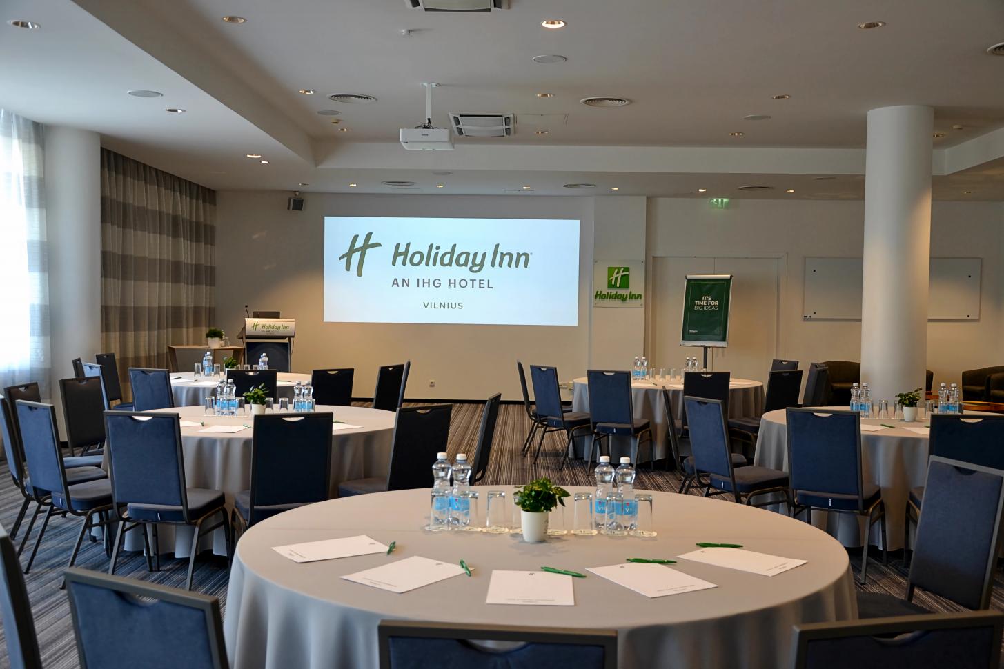 Viešbutyje įrengtas funkcionalus konferencijų centras, pritaikytas tiek atviriems, tiek ir uždariems renginiams: personalo mokymams, seminarams, susitikimams, posėdžiams ar tarptautinėms konferencijoms. „Holiday Inn Vilnius“ siūlo 6 skirtingo dydžio sales su natūraliu apšvietimu, kuriose vienu metu gali dirbti iki 350 dalyvių.
