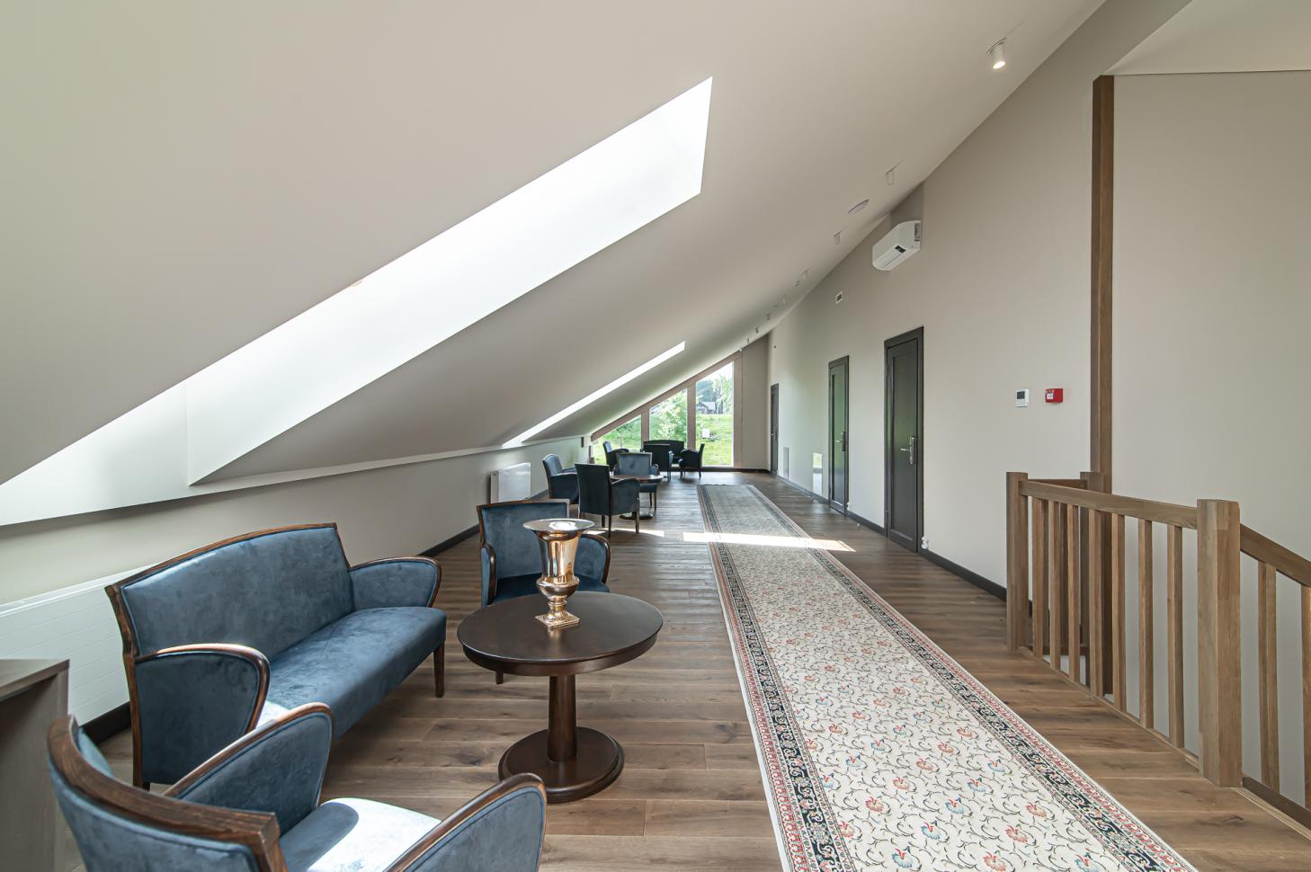 Ši ervdvė turi 2 konferencijų sales, renginių erdvę iki 200 asm., maniežą ir kotedžus svečių apgyvendimui (kiekvienas jų turi išėjimą į ištaigingą jodinėjimo maniežą).