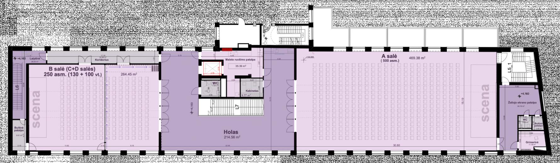 1000 dalyvių - trys konferencijų salės ir bendrosios erdvės, talpinančios iki 1000 dalyvių.