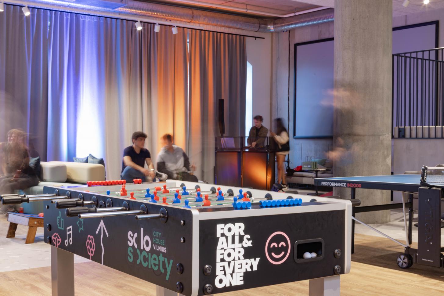 Solo Society City House Vilnius - moderni ir erdvi vieta, puikiai tinkanti tiek verslo renginiams, tiek neformaliems susibūrimams, seminarams ar asmeniniams gimtadieniams. Coliving'as įsikūręs itin patogioje lokacijoje - Naujamiesčio ir Senamiesčio sandūroje. Ši erdvė sujungia privatumo ir bendruomeniškumo jausmą.