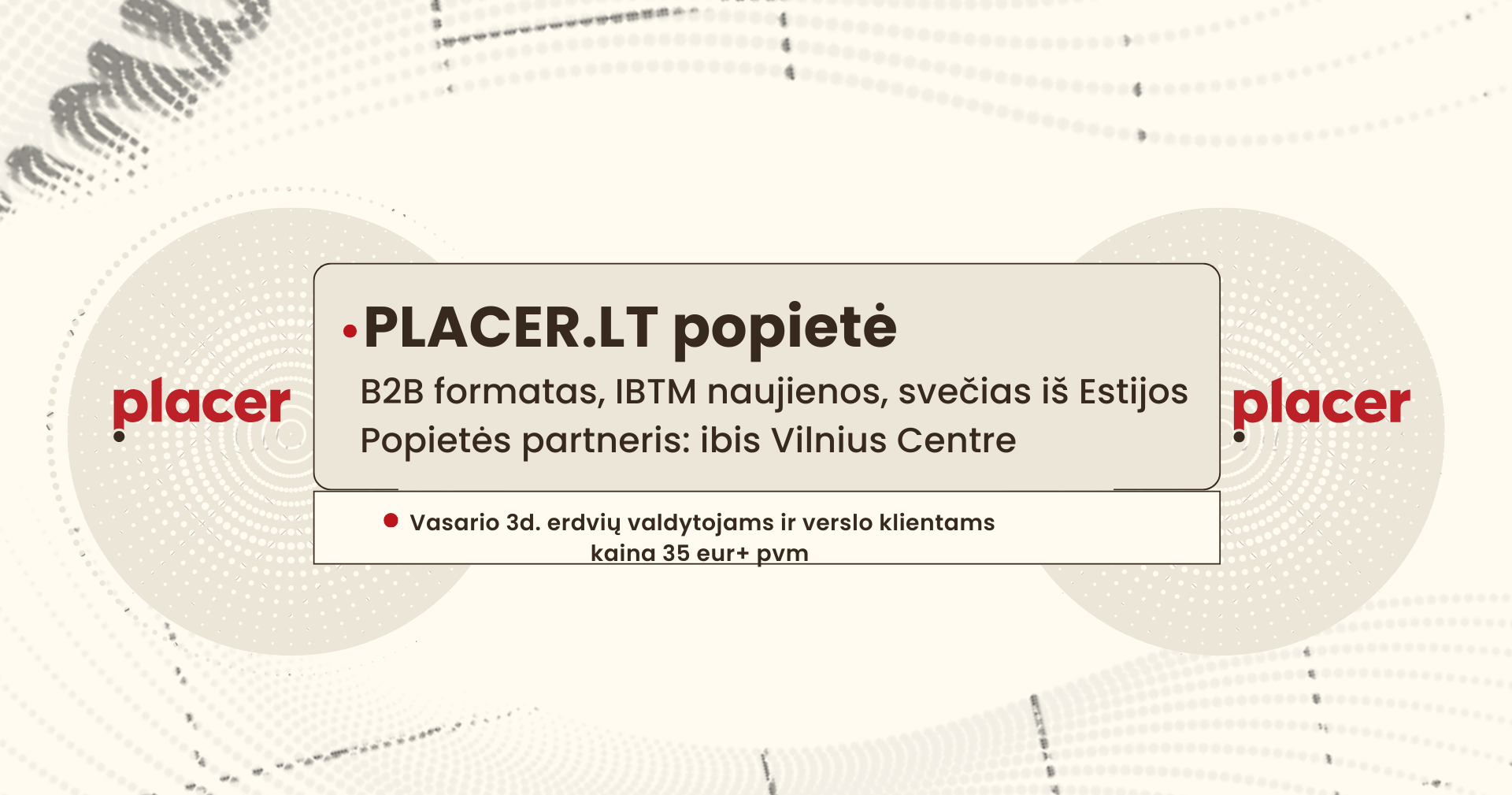 📌 2026 m. sausio – kovo mėnesiais taikoma speciali nuolaida PLACER.LT klientams - 40% visų salių nuomai pirmadieniais ir penktadieniais.