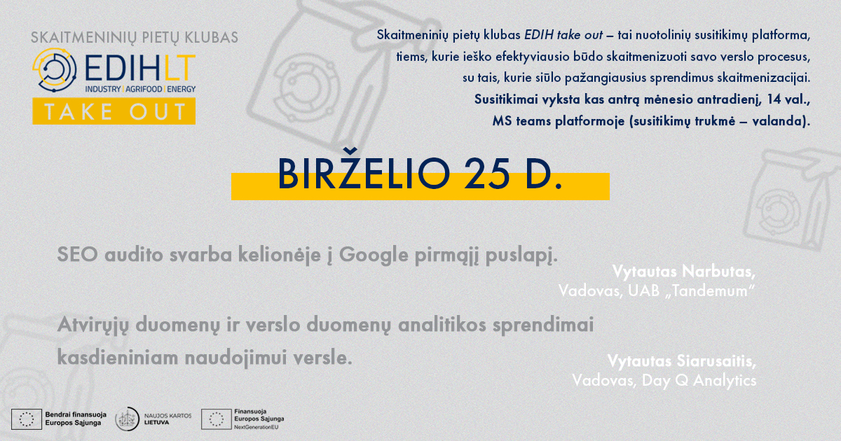Susitikimo metu Tandemum vadovas Vytautas Narbutas pasidalins, kuo svarbus SEO auditas, siekiant atsidurti pirmame Google puslapyje, o Day Q Analytics, Qlik partneris vadovas Vytautas Siaurusaitis atskleis, kokius[...]