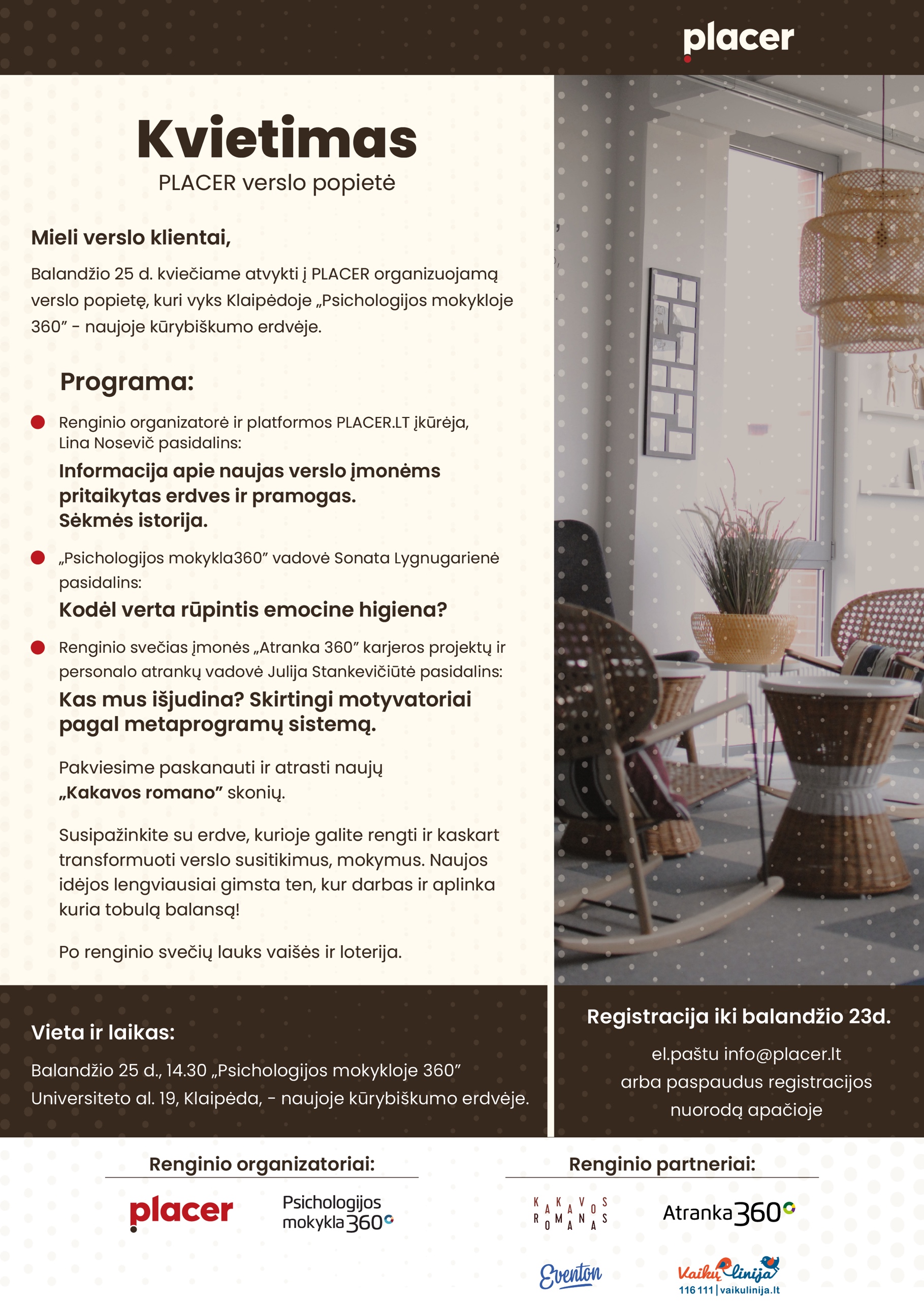Balandžio 25 d. kviečiame atvykti į PLACER organizuojamą verslo popietę Klaipėdoje.
