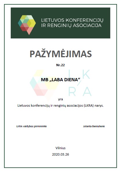 Salių nuomos ir paieškos portalas tapo Lietuvos konferencijų ir renginių asociacijos (LKRA) nariu. Ačiū už nuostabią bendruomenę ir naujas galimybes!