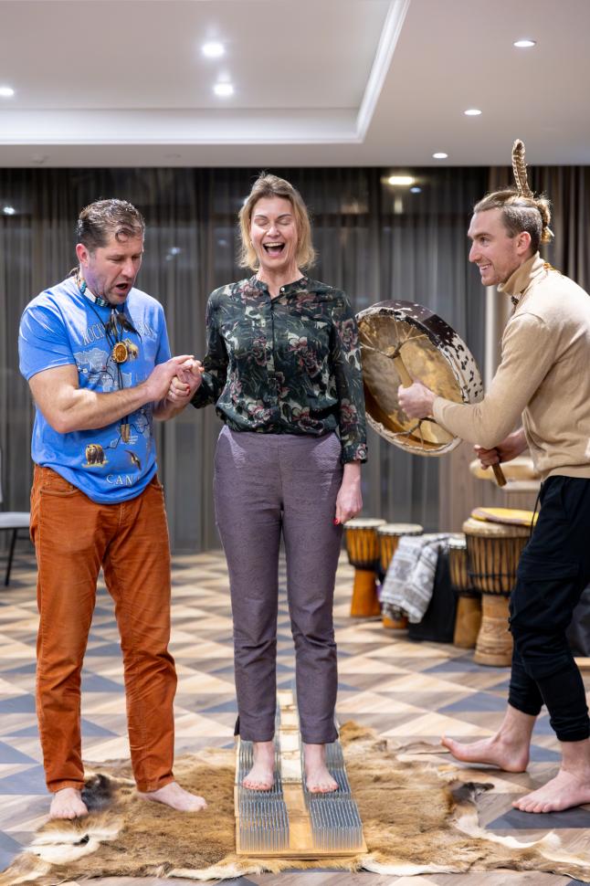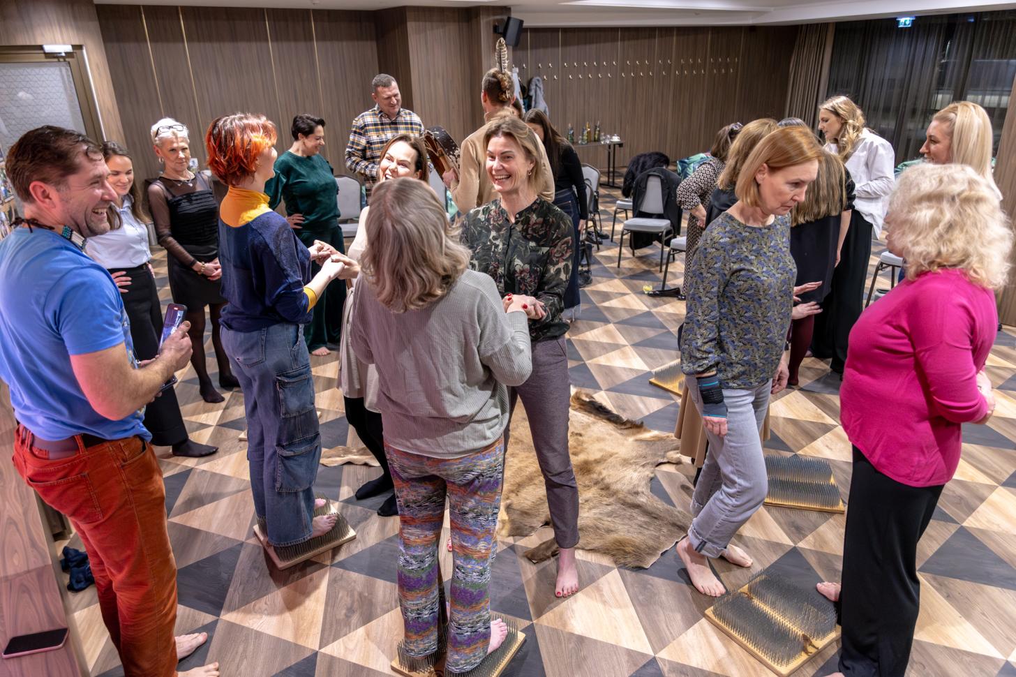 Kolektyvų susitikimai ir kūrybinės dirbtuvės – amuletų gamyba, būgnų ratas, simbolinės apeigos, stiprinančios ryšį ir bendrystę.